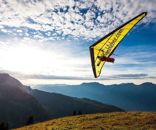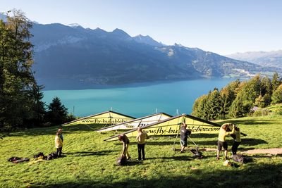 Take off in Beatenberg and glide over Interlaken in a hang glider.