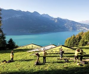 After a short drive to Beatenberg, you get ready for takeoff. A brief run, and you are airborne. For 10–20 minutes, you will see Interlaken, the lakes, and the mountains with a bird's-eye view. Your pilot tailors the flight: calm or dynamic with maneuvers.