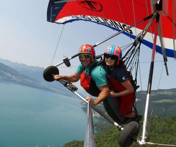 짧은 스프린트로 언덕을 내려가면 바람이 당신을 공중으로 들어 올려요. 비행은 10–20분 동안 지속됩니다. 조용하고 부드럽게 비행할지, 역동적인 회전을 경험할지는 당신이 결정해요. 호수에서 융프라우 지역의 정상까지의 경치를 감상할 수 있습니다.